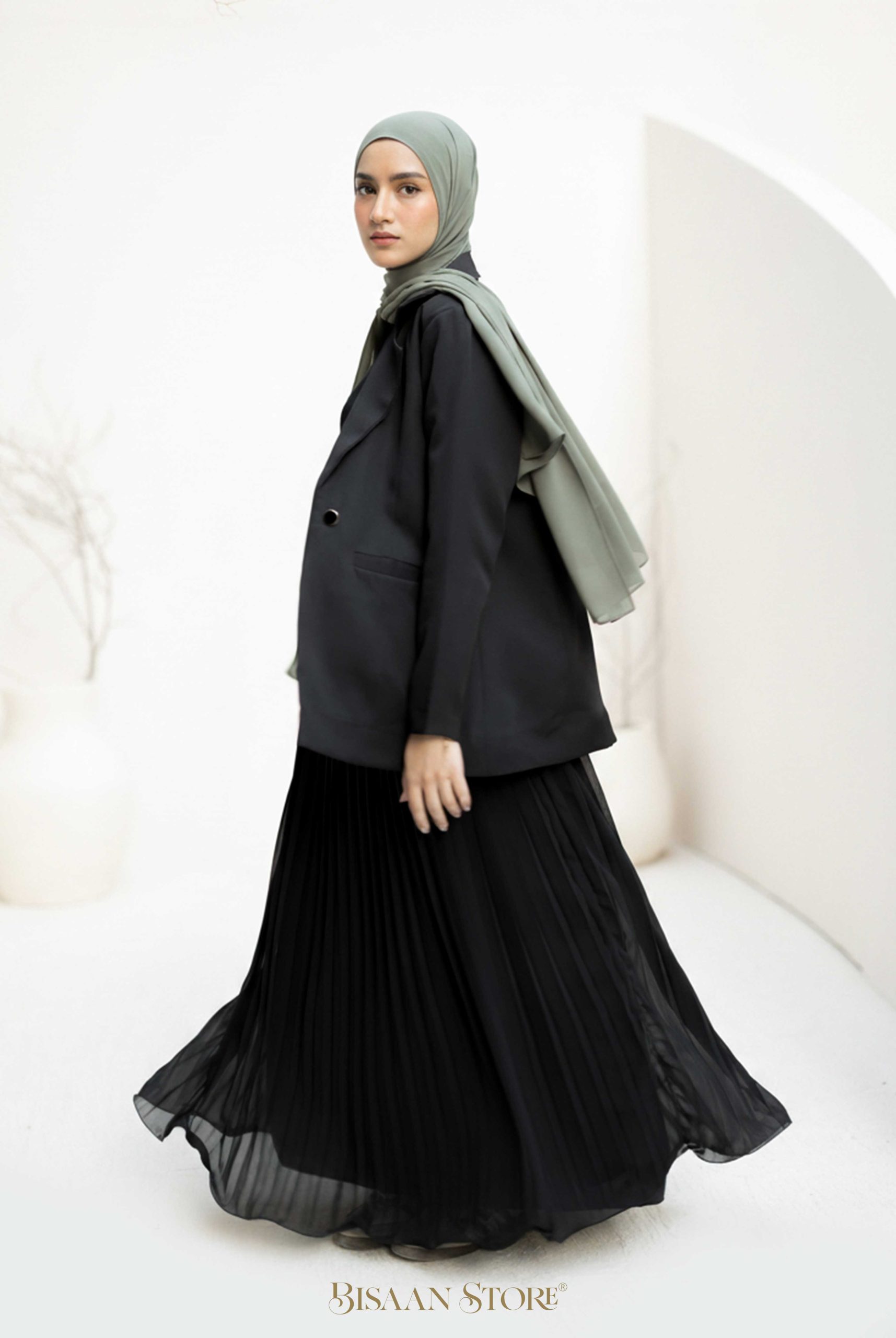 The smooth texture and refined tailoring give it a sophisticated appearance that’s perfect for office wear or chic casual outings.