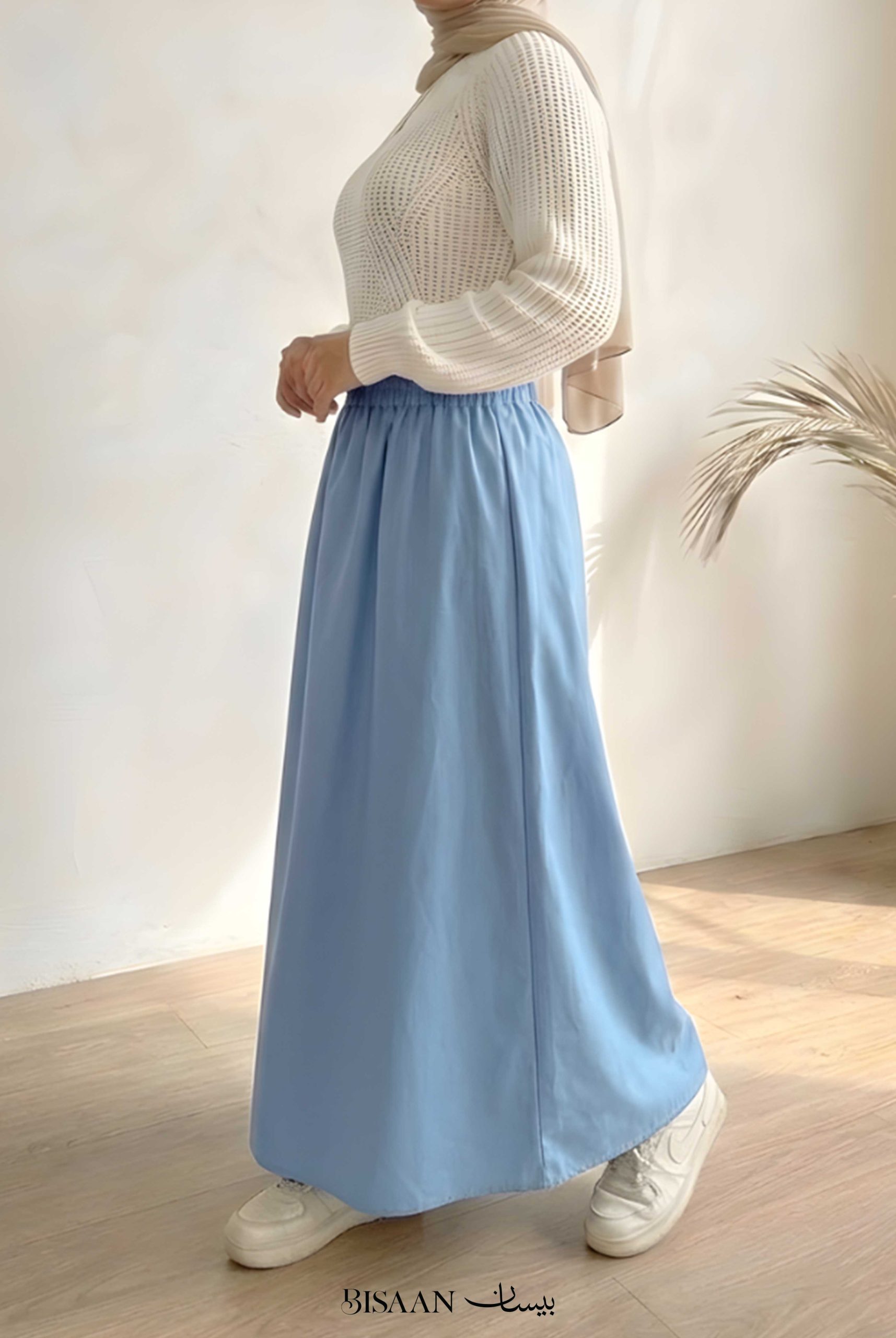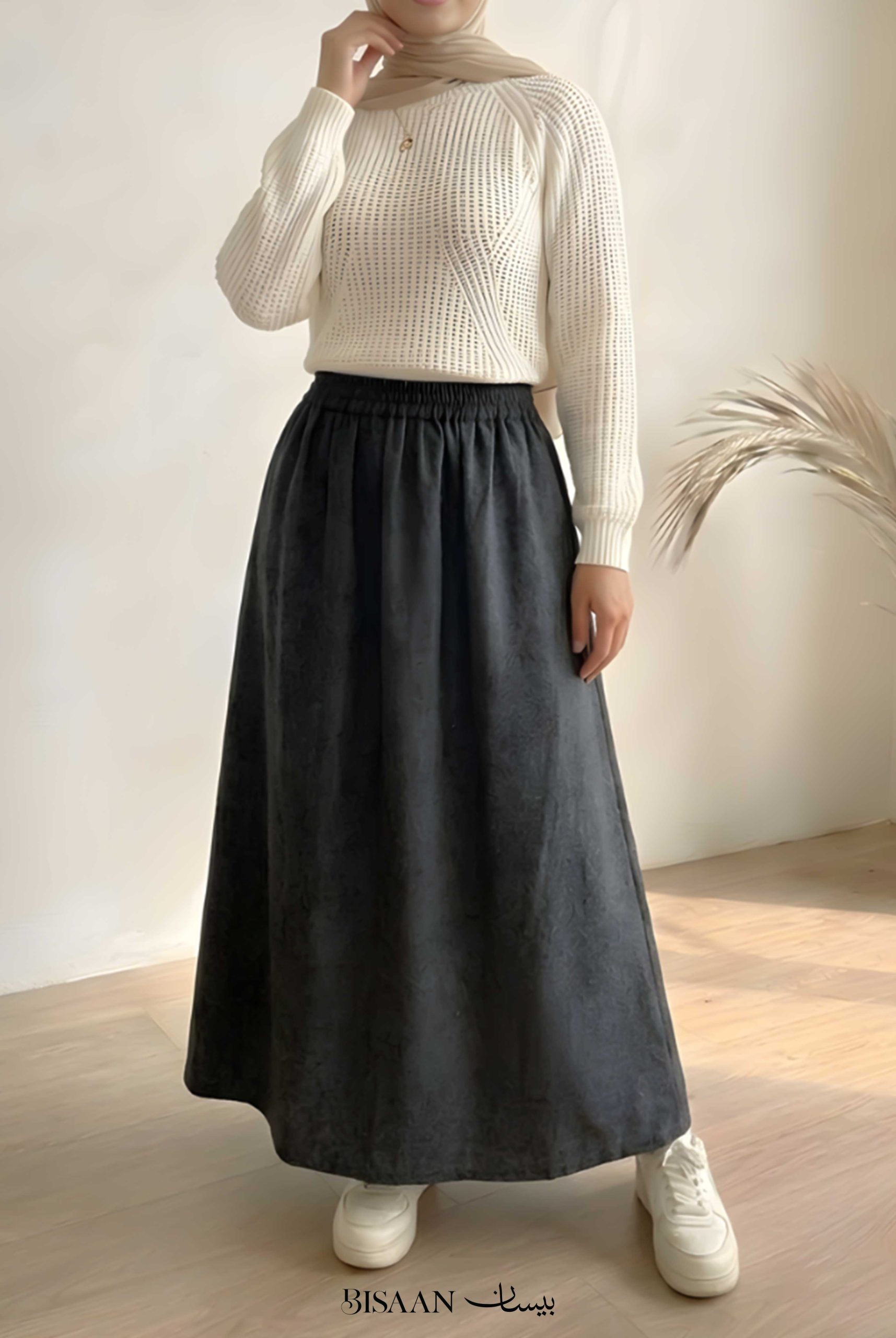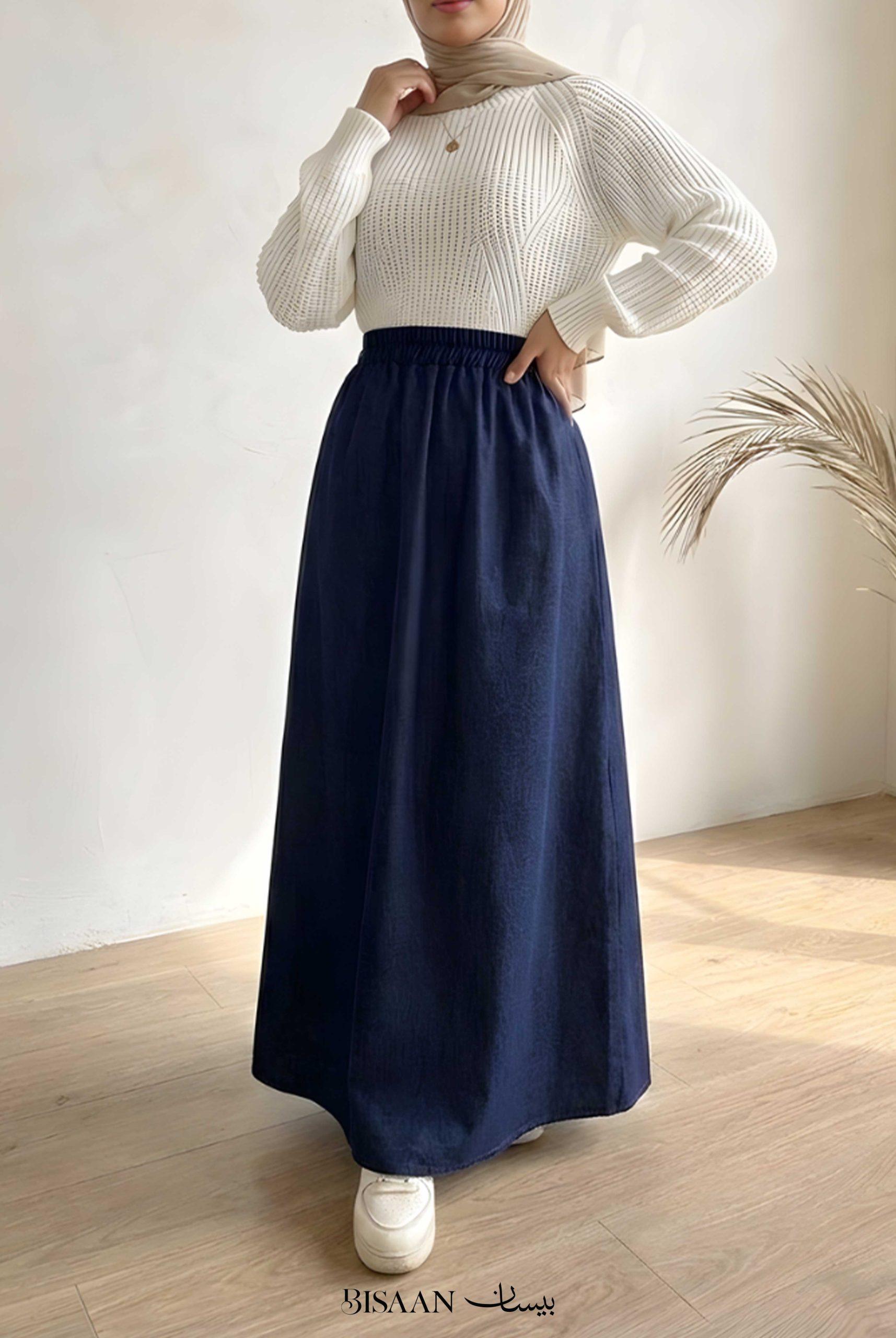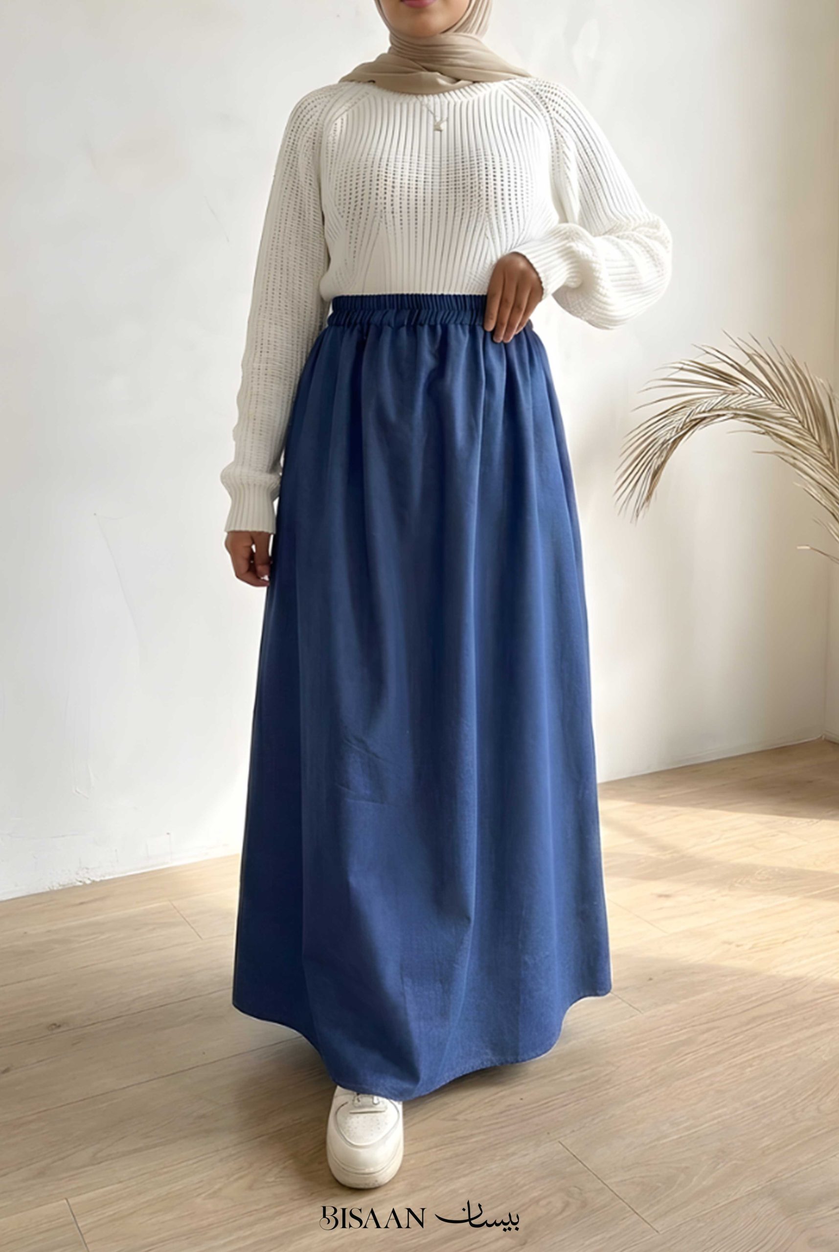 A long, flowy denim skirt designed to give you an elegant yet comfortable look ✨